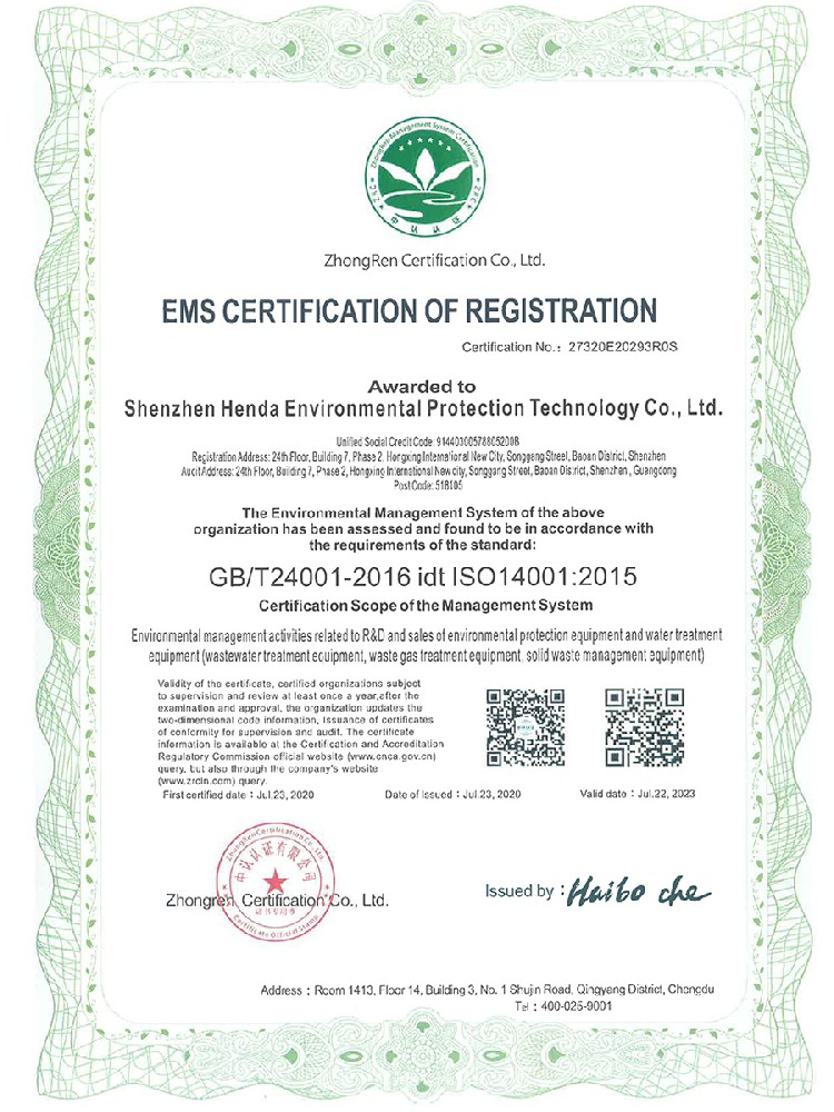 Address:Hengda environmental protection Co., Ltd., Floor 7, building 5, nantiyun chuanggu, No. 259, Guangming Avenue, Guangming New Area, Shenzhen