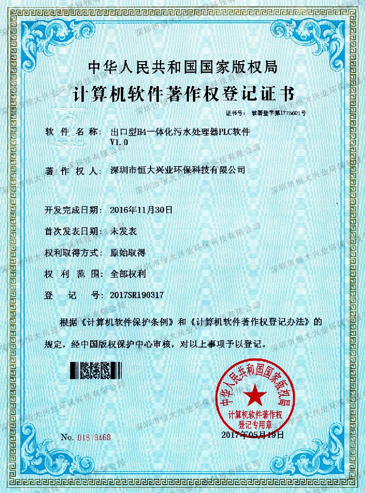 出口型H4一體化污水處理器PLC軟件V1.0