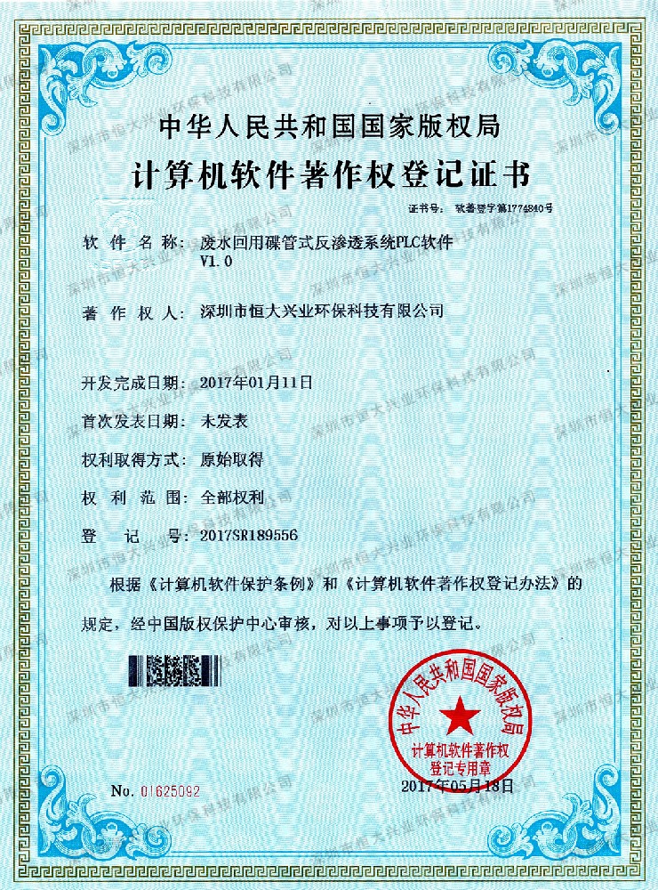 廢水回用碟管式反滲透系統PLC軟件V1.0