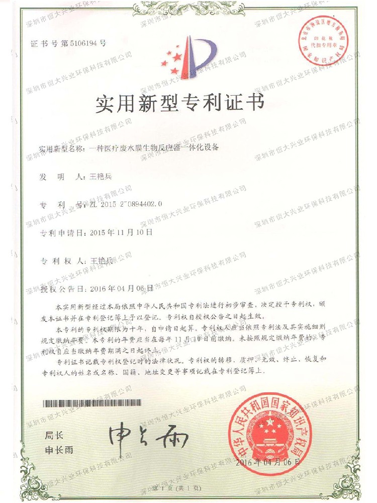 一種醫(yī)療廢水膜生物反應(yīng)器一體化設(shè)備