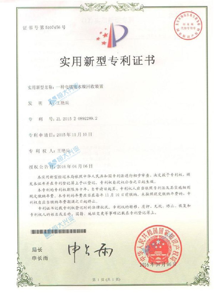 一種電鍍廢水鎳回收裝置